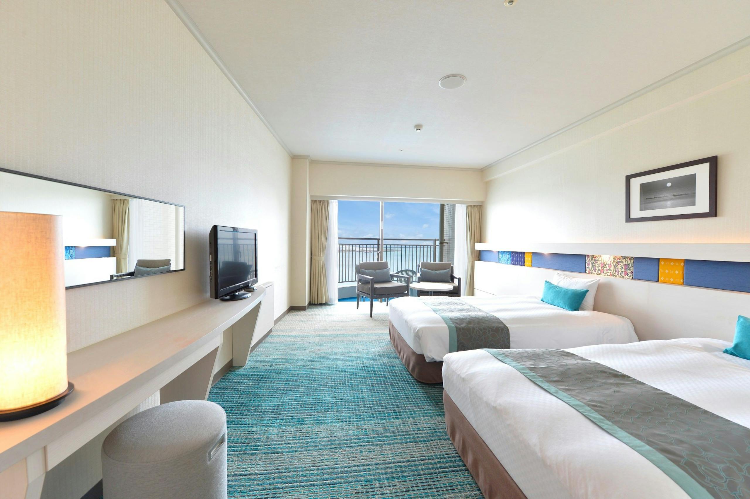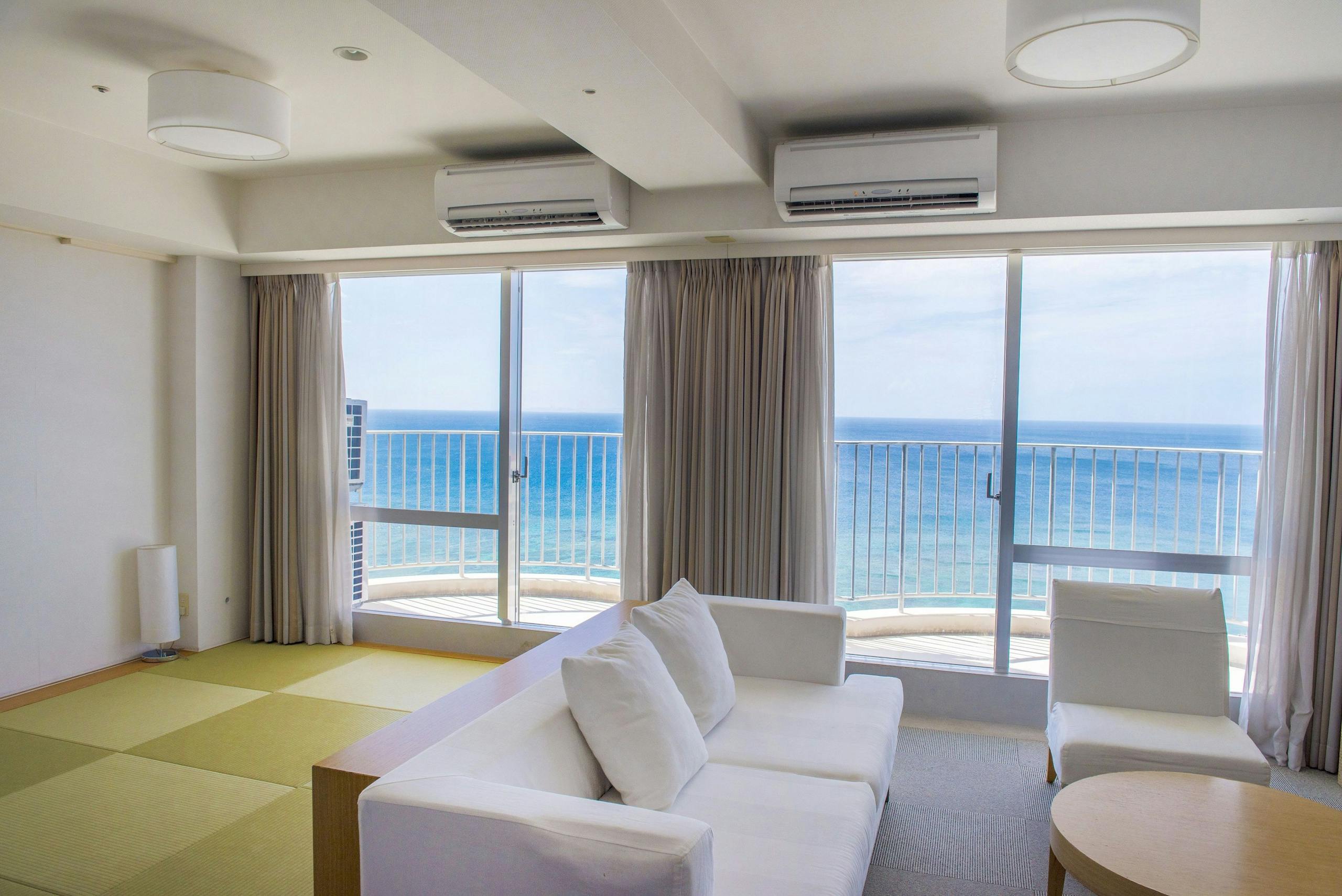 客室からは青く美しい沖縄の海を一望。