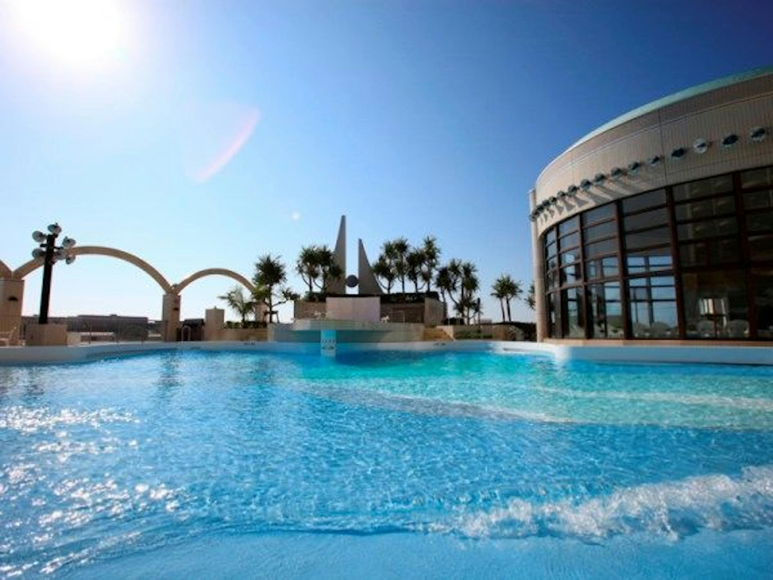 ホテルには那覇市で唯一のかけ流し天然温泉があり、屋内外のプールで遊んだ後や、観光帰りの疲れを温泉で癒やすことも。