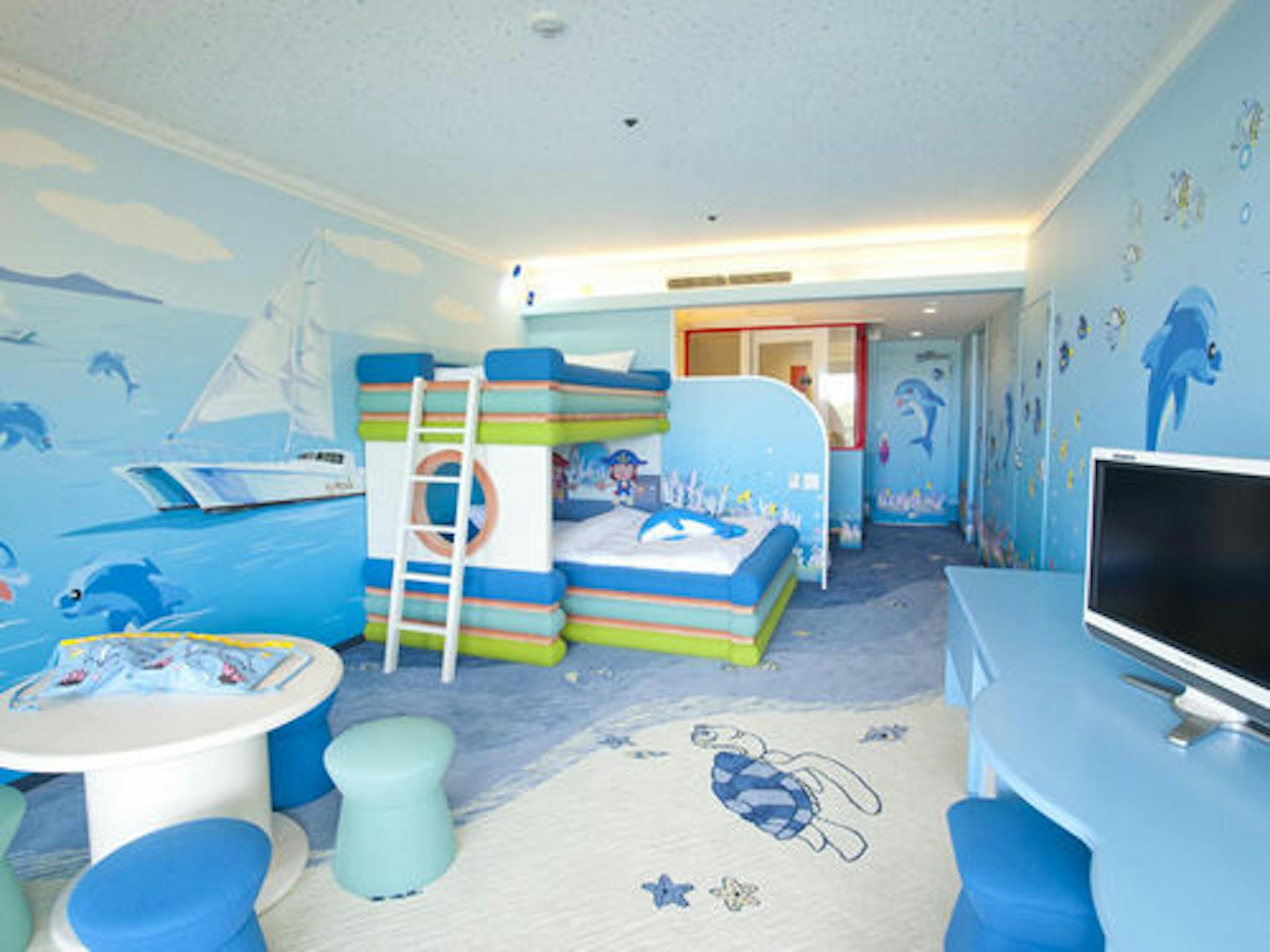 ファミリー向けのフリッパーズコネクティングルームはスペシャルアメニティ付き。