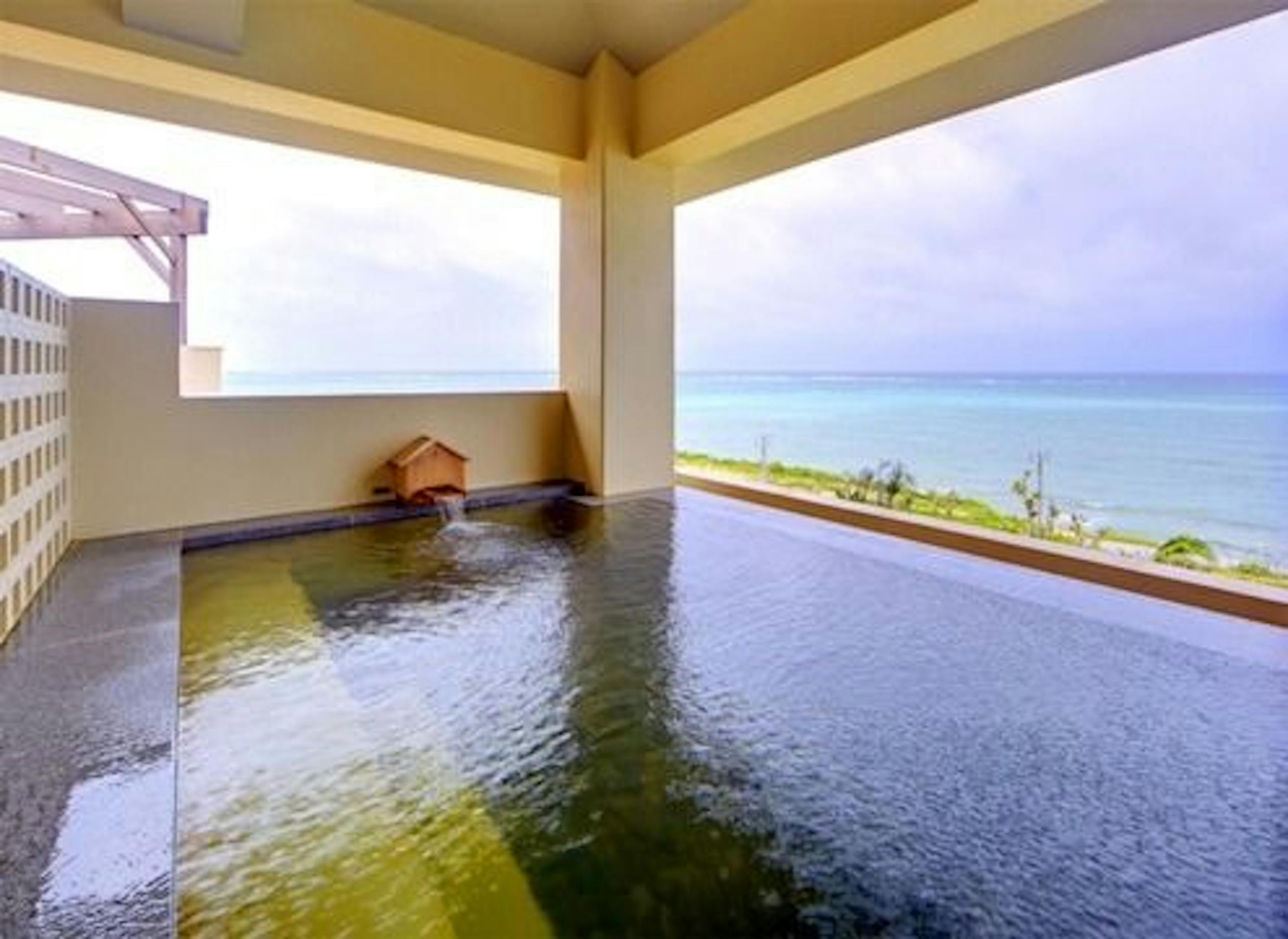 あえて真西に向けて建てられた大浴場の露天風呂はオーシャンビューで、瀬長島の夕日を楽しむこともできます。また一部の客室も天然温泉の露天風呂が付いているので、子連れでもゆっくりとお風呂に入ることができるでしょう。