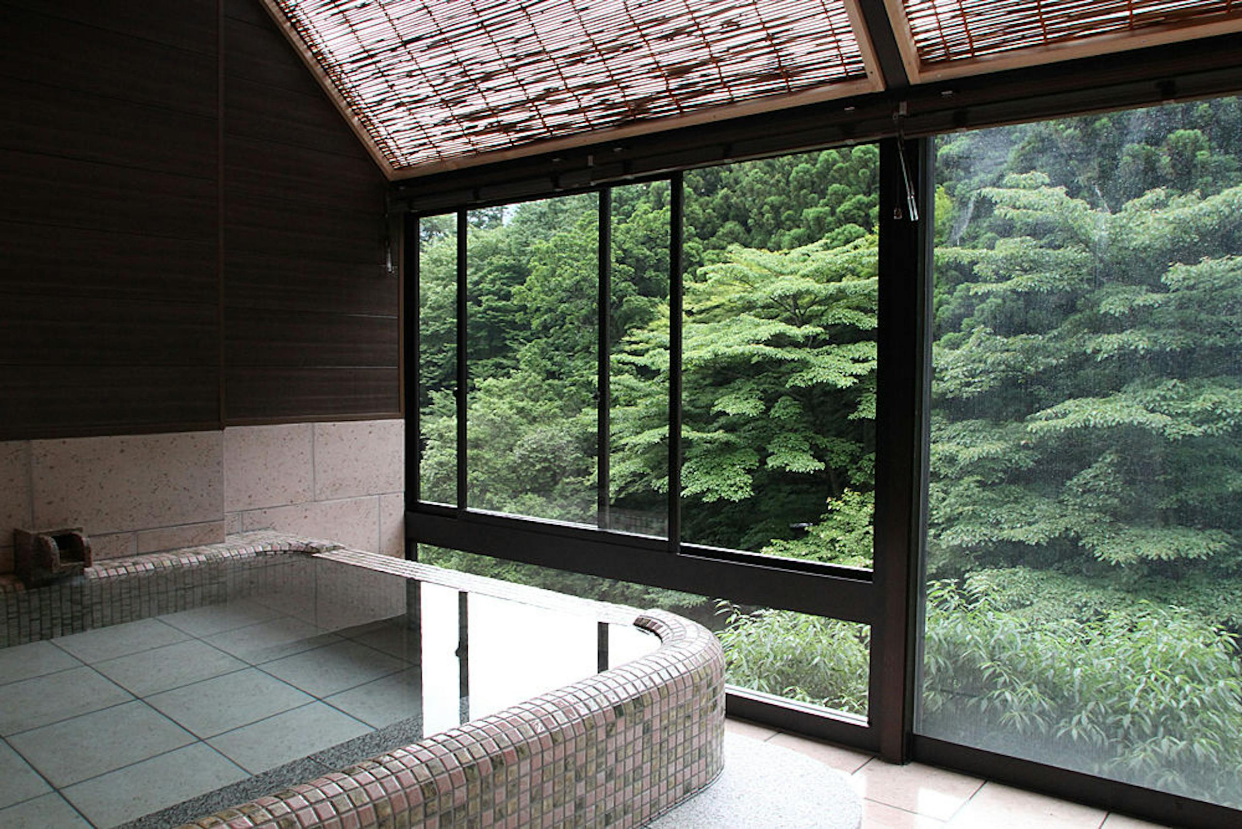館内の大浴場内には、露天風呂(温泉)・檜風呂(温泉)・内湯が設置。特に檜(ヒノキ)風呂は源泉掛け流しの温泉で、箱根では珍しい「にごり湯」を堪能できます。