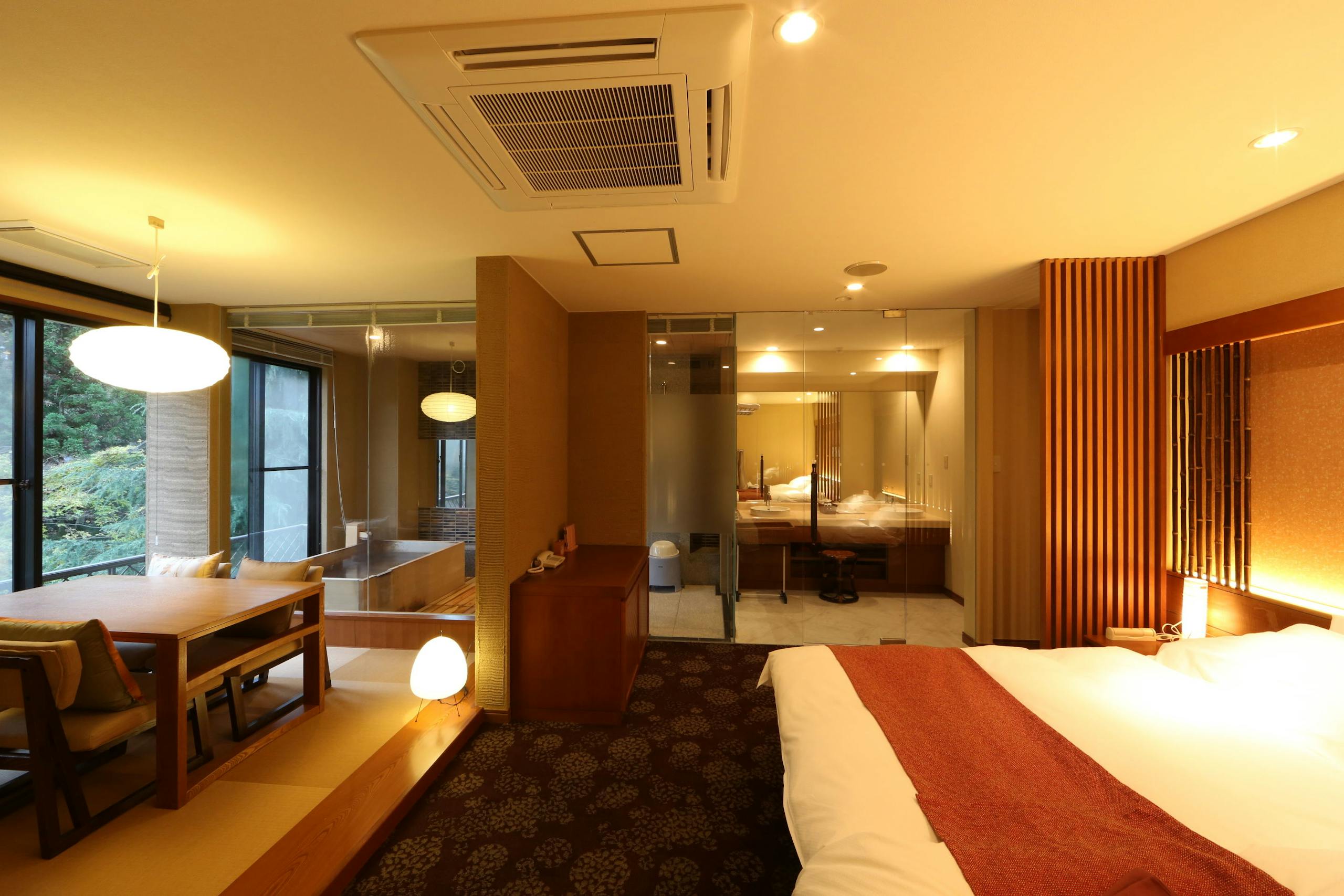 強羅花扇は早雲山にある温泉旅館です。100%源泉かけ流しの泉質は箱根でも珍しい重曹泉の泉質を持つそうで、動脈硬化、切り傷、火傷、慢性皮膚病などへの効能が期待できます。