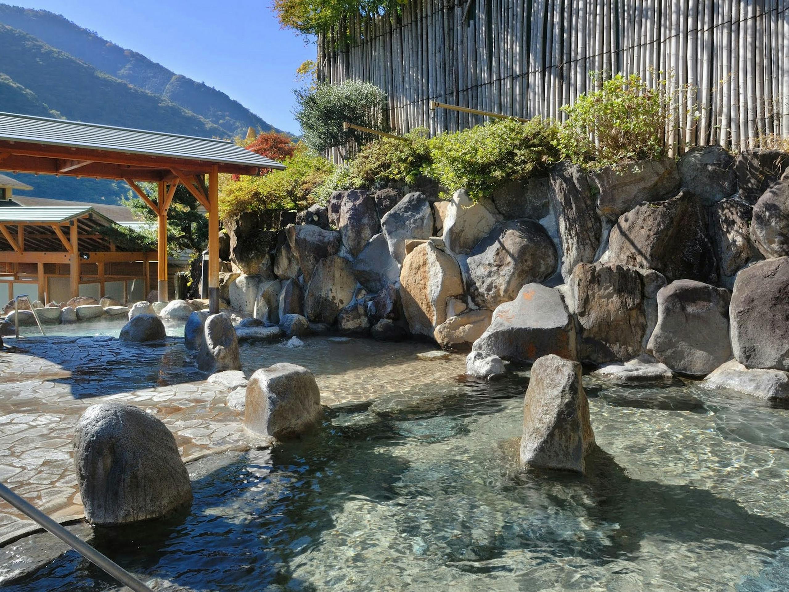 塔ノ沢温泉の金乃竹 塔ノ澤は、全客室源泉かけ流しの温泉旅館。自家源泉100%かけ流しの温泉を、客室露天風呂や1階大浴場にて楽しむことができます。泉質はアルカリ性単純温泉で、美肌効果や疲労回復効果に期待。